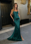 Simple Satin Dark Green Spaghetti Strap Side Slit Lace Up Mermaid Long Prom Dress,Wedding Guest Dress
