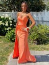 Classic Satin Orange Sweetheart Strapless Pleats Mermaid Side Slit Long Prom Dress