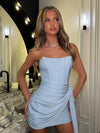 Sparkly Sequin Blue Scoop Strapless Pleats With Trail Bodycon Homecoming Dress Short Mini Dress